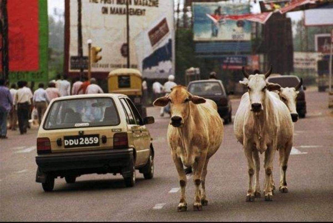 所以在印度,神圣不可侵犯的牛非但不会惹来“杀身之祸”,还能享受与人等同,甚至高于人的待遇。比如车辆和行人在街上遇到牛,会主动给牛让路,印度人会把牛打扮得十分体面、甚至还有专门为年长的牛而设的养老院。