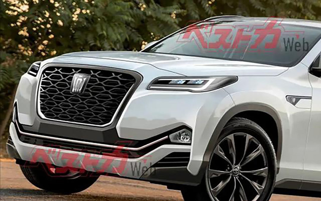 从渲染图可以看出,新车确确实实是一台体型较大的SUV车型,其前进气格栅采面积较大,以网状结构丰富前进气格栅的内部结构。新车大灯样式与第十五代皇冠极为相似,只是造型略显修长,搭配前脸的镀铬装饰,让新车前脸更显精神。值得注意的是,新车的前包围底部的倾斜角度较大,可让新车拥有更大的接近角,提升车辆的通过性。