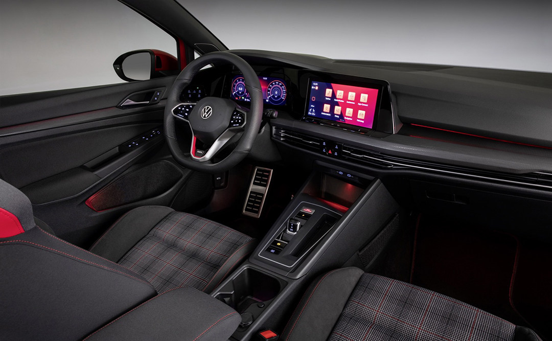 内饰可以参考海外车型,方向盘上同样增加了红色饰条并附上GTI标识,经典的格子布座椅自然不会缺席,而整体设计跟已上市的第八代高尔夫别无二致。