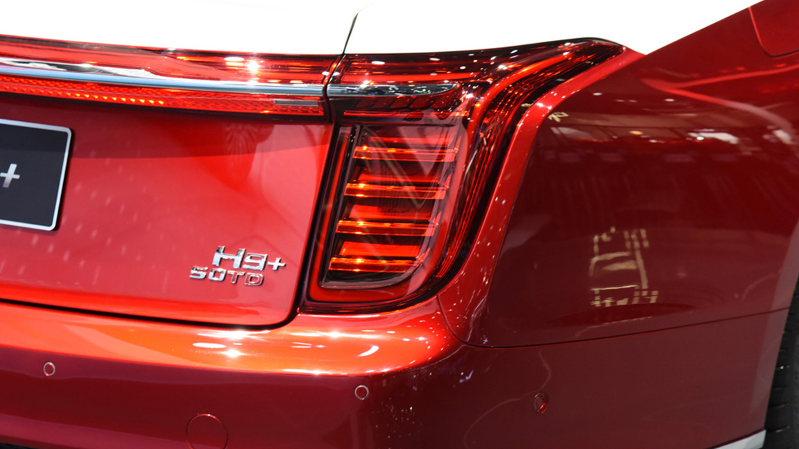 车尾部分,红旗H9+也继续采用时下流行的贯穿式尾灯,拉伸了车尾视觉宽度的同时也与车头相呼应。值得一提的是,得到加长的H9+保留了稍显溜背的C柱,同时下方的排气口造型也从双边共两出升级为双边共四出,这与一众豪华行政轿车相比再添一份活力。