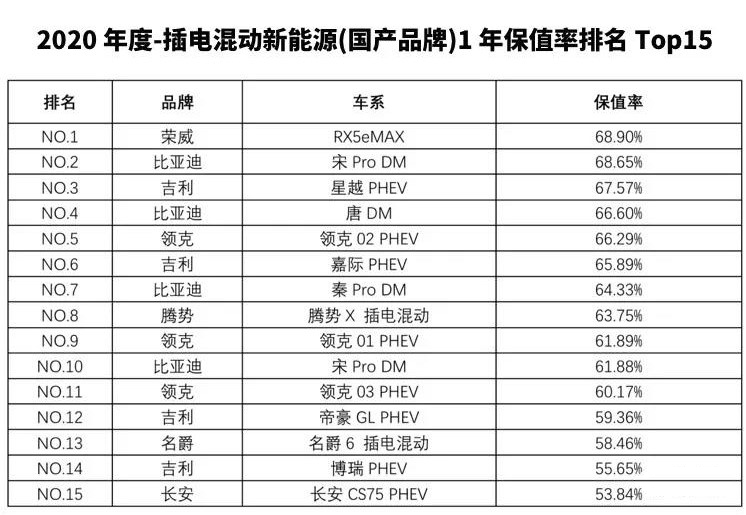 2020年度中国汽车保值率公布 MG6 PHEV、纯电动MG EZS榜上有名