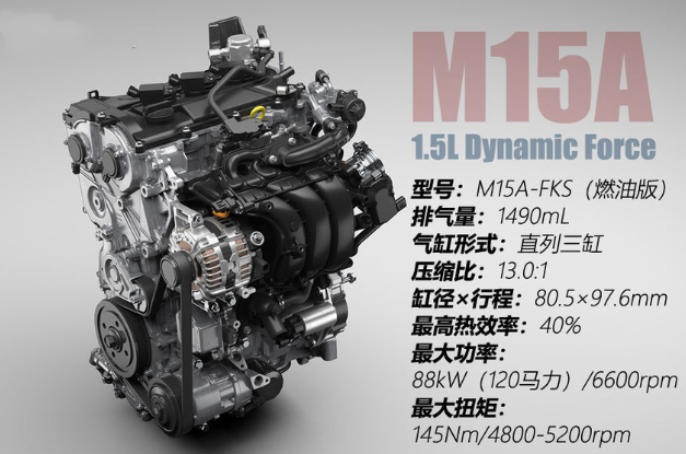 就在2021年年初,2021款卡罗拉和雷凌接连着上市,值得一提的就是它们都新增了一款全新1.5L三缸版本车型。此发动机代号为M15A,热效率达到40%,动力比已有的1.2T发动机更强劲,油耗更低。M15A系列发动机拥有不少技术优势,采用缸内直喷、双VVT技术以及高滚流比等技术,特性跟M20C保持一致。通俗来说,丰田M15A其实就是现款亚洲龙、凯美瑞等车型上的M20A 2.0L发动机砍掉了一个气缸的产物,不仅减少了研发成本,还提升了配件的通用性。