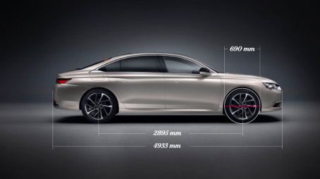 其车身尺寸为长4933mm、宽1855 mm、高1468 mm,轴距达2895mm。修长、宽绰的轮廓和溜背式造型带来流畅线条,呈现出兼具优雅和动感的身姿。灵感源于游艇的两条特征线贯穿全身,使DS9即使在静止状态亦显蓄势待发,远观即已惊艳。