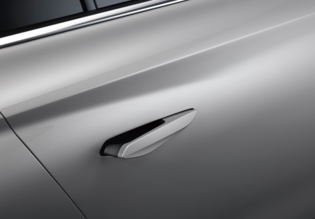 来到车身侧面,隐藏式门把手采用极简主义设计,自然融入车身,既有助于外观独特风格的呈现,又能有效降低风阻。