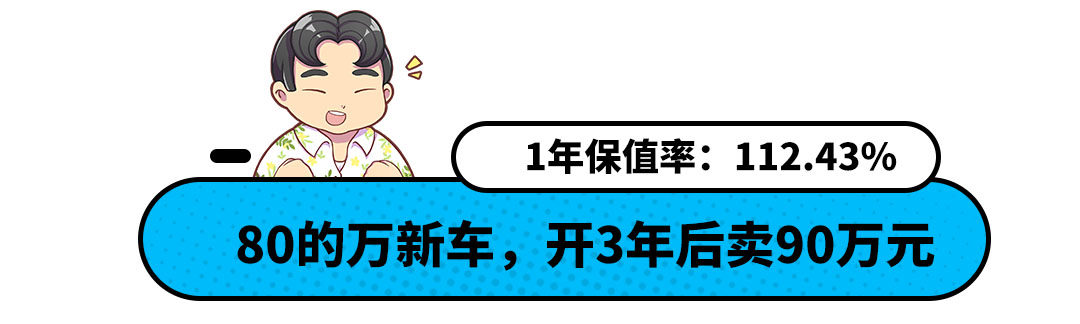 以售价81.90万的埃尔法双擎 2.5L 豪华版为例,加价+购置税等,新车实际落地价可能在110-120万元左右,相当于新车一落地,保值率就有130%-140%左右。所以埃尔法第三年还有112.43%的保值率,也就不奇怪了。