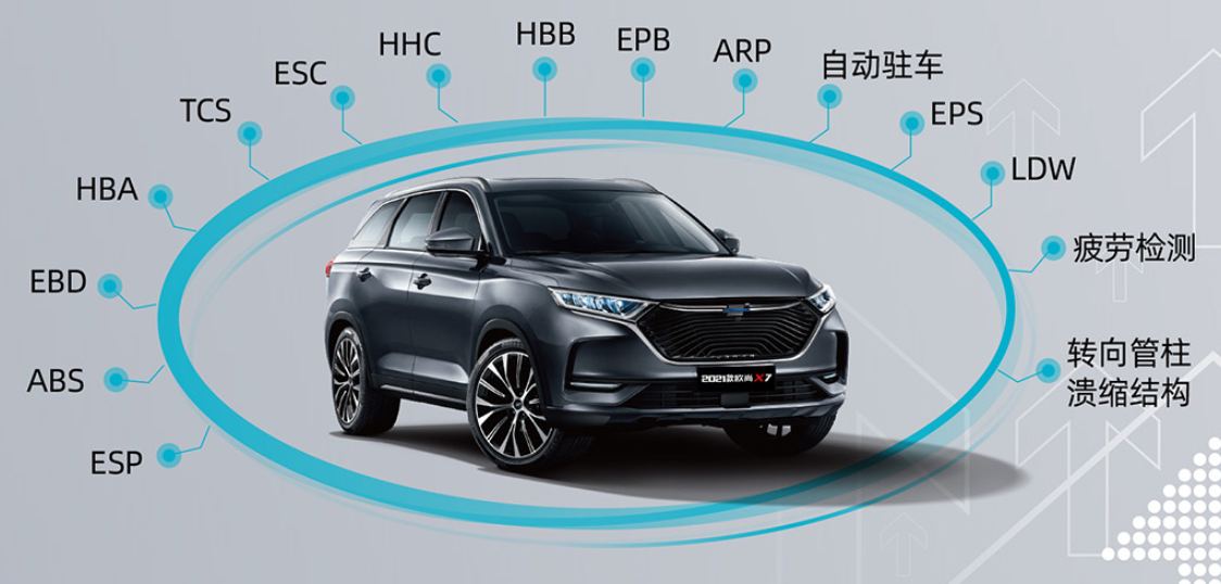 不仅功能配置满足,为了让消费者用车放心,长安欧尚X7的安全配置也是越级表现。首先配备了十五大主动安全系统,ABS、EBD、EBA、TCS、ESC等一应俱全。