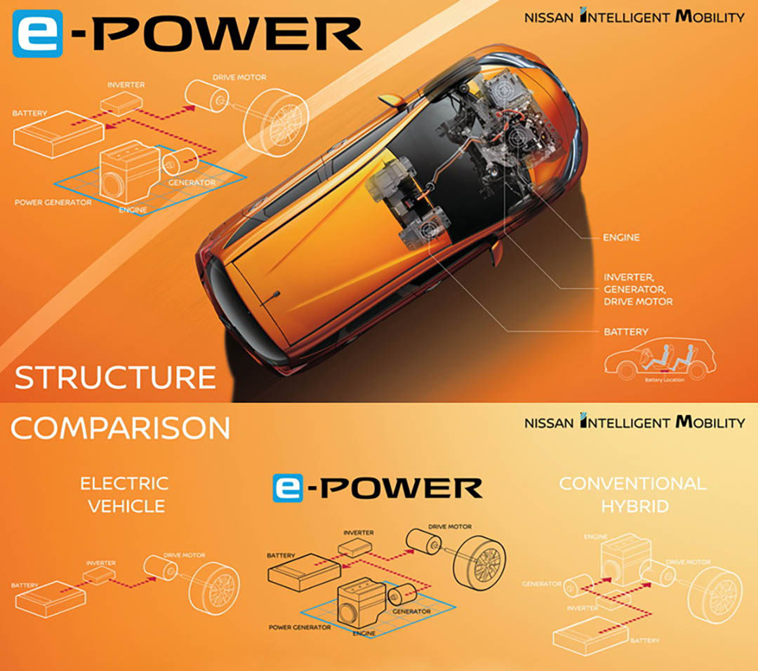 值得注意的是,日产的e-POWER增程系统早前曾搭载在海外的日产NOTE车型上,该车配备的发动机排量为1.2L,最大功率仅为58kW,同样与电机进行组合,其在日本JC08(相当于国内的NEDC)测试标准下,得出的百公里综合油耗数据为2.67L。