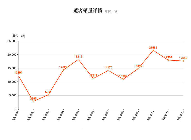 事实上,不只是搭载在全新逍客上的e-POWER增程系统优秀,逍客车型本身也是相当优秀。可以看到,在市场较为低迷的2020年,日产逍客的全系车型,总销量高达161,193辆,月均销量超过万辆,在国内众多紧凑型SUV当中,日产逍客的销量可以说相当亮眼。