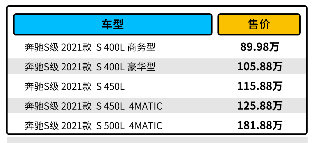 额……看似售价不菲,但对于新款奔驰S级的潜在用户来说,似乎也并没有那么贵!