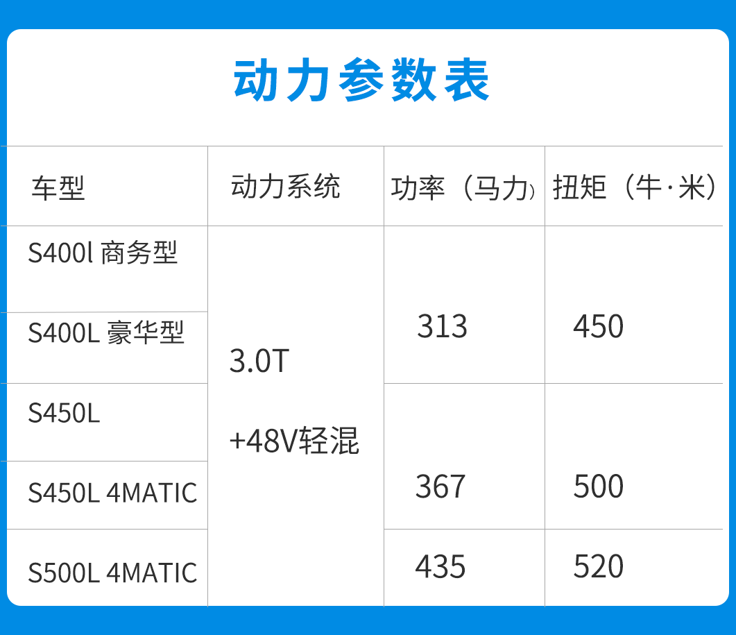 这一代的奔驰S级给买买君感觉是一台并不需要司机也足以彰显自身尊贵身份的豪华轿车。科技化的驾驶辅助系统和奔驰对于豪华驾乘的诠释已经改变了以往开好车会被误认以为是司机的固有印象。那么基于此买买君推荐S 450L 版本车型。首先五款车型除了动力高低功率的差别之外,在配置上的差异化并不大,且车型版本之间相差的配置选项大部分均通过加装来得到。