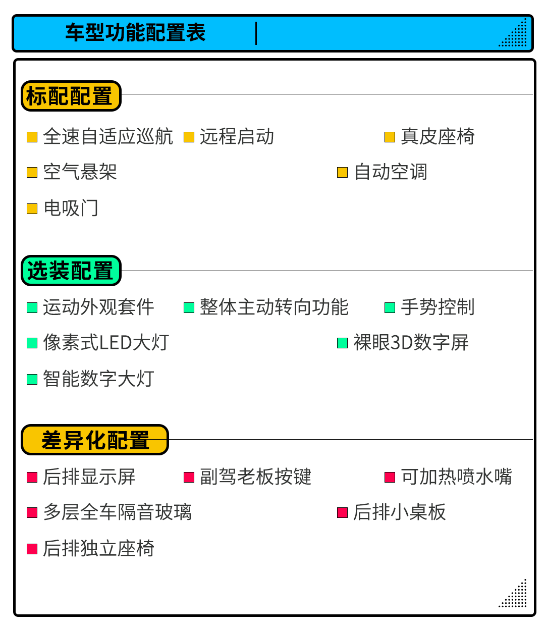 值得一提的是,奔驰引以为傲的几何多光束大灯并没有装在款奔驰S级身上,取而代之的是像素式大灯总成,通过130万个微镜片折射出的灯光实现分辨率超过260万像素的光束。但此项配置尽在新款奔驰S级S 500 L 4MATIC配备,其余车型则需要26,800元来选装来得到。