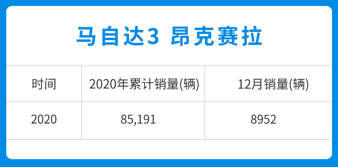按道理来说,拥有这么好操控水准的昂克赛拉,月销量没有2万辆,打底也有1万辆吧,但是事实并未如愿以偿,昂克赛拉在2020年累计销量85,191辆,平均下来每个月就7000辆左右,相比于同级别的“两田一众”真不够看。
