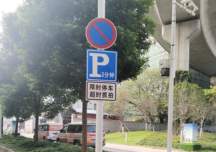 近些年,在一些地方还设置了一种在地面上写着3分钟的停车位,停车位的旁边竖着一个大大的停车标识“P”和“3分钟”字样,网友称其为“半个“禁停标识。
