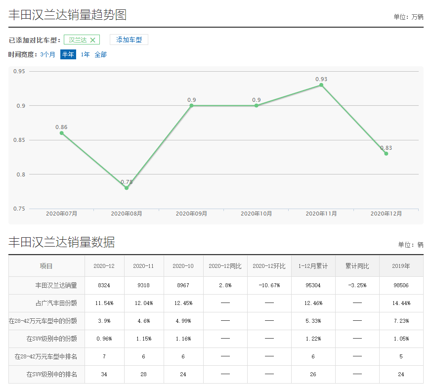 口说无凭,直接以销量为准证,2020年汉兰达累计销量95,304辆,而且近几个月销量稳定在8000-9000辆,并没有受新冠疫情很大的影响,相比去年销量也相差无几,这样的产品力确实让其他车企闻风丧胆,而且这还是换代之前的,并建立在没有优惠基础的情况下,同级别除了汉兰达,绝无仅有。