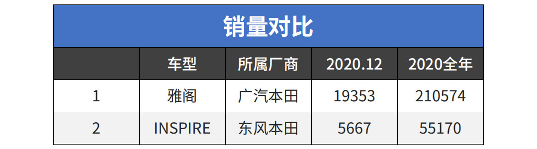 就如同广本雅阁与东本INSPIRE的关系,虽然两车作为技术完全共用的兄弟车型,但广本旗下的雅阁更加深入人心;以2020年全年销量为例,雅阁共售出210574辆,而INSPIRE全年仅售出55170辆。而东本的思域同样如此,其口碑积累、市场影响力对于Integra无疑是巨大的挑战。