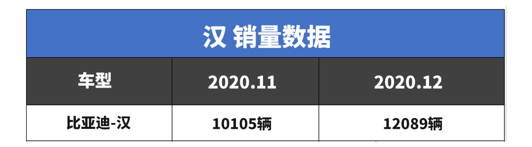 考虑到汉的定价和市场对国产车的热度,汉又是作为定价偏高的旗舰车型,月销能达到5000已经算是相当出色的成绩,但汉的实际表现确实出乎了所有人的意料。2020年11月和12月,汉的销量已经连续两个月突破10000辆,成长速度确实惊人。