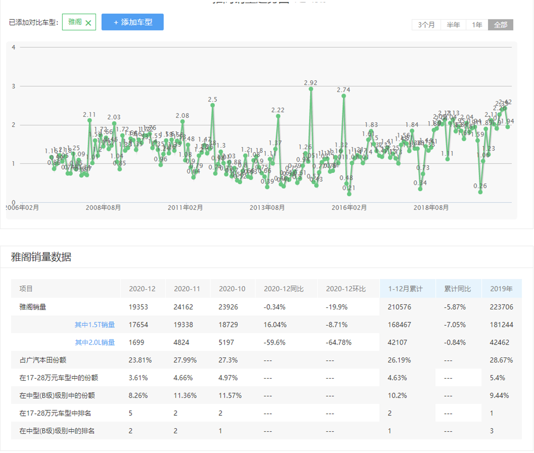 而在国内,2020年,雅阁也是以年销量21.05万台占据国内B级车销售排行榜第一,占比广汽本田销售份额的24.36%。