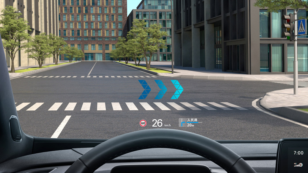 显示屏使用红外感应系统,左右翻页可以通过在屏幕前挥动手部即可完成。此外,ID.4 X上的AR-HUD功能预计也会使用在ID.6 X上,可显示包含车速、导航箭头、距离、目的地标记、道路名称等信息。