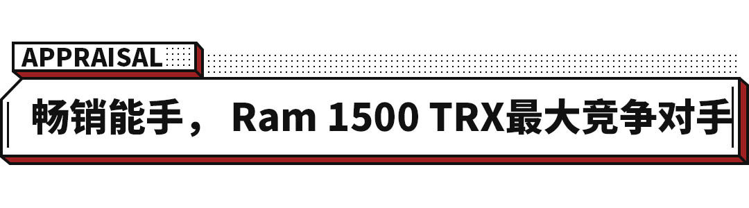 F-150猛禽则是以F-150延伸款更加高端的车型身份出现,多年来并没有直接竞争对手。而Ram 1500 TRX的出现,由于该款车型搭载着6.2T V8发动机,拥有523kW和880N·m的强大动力性能,无论是定位,还是整体实力都与F-150猛禽非常接近。自然而然,F-150猛禽的最大竞争对手也便是Ram 1500 TRX这款车型,而搭载V8更加硬核的发动机的版本或许还要等到2022年。