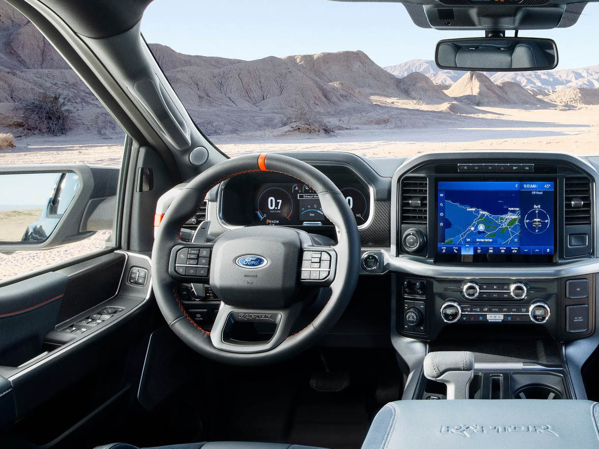 进入内饰,中控台、方向盘与座椅上都有“Raptor”字样的印花以此凸显身份。当然,觉得这些还不够档次的话,我们还可以选装Recaro®桶型座椅、8个扬声器的Bang &Olufsen (B&O) Unleashed高级音响系统,以此提高驾驶舒适性。