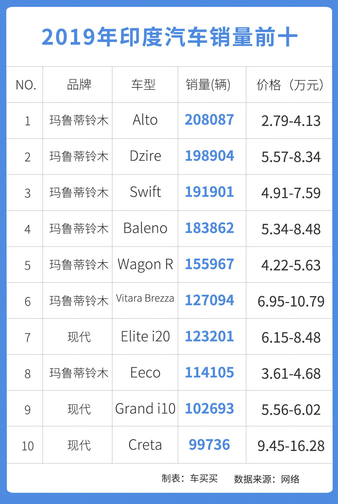 由于缺少印度2020年汽车销量数据 暂用2019年