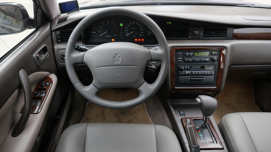 外观上的细节饰件也一同更换了,包括中网、车尾两侧的标识甚至是车窗饰条等等,而大多配件均从日本订购回来,更换后整台车的细节可以说是满分了,大量的镀铬饰条搭配上深色车身,正是上一代经典老车该有的豪华气息。