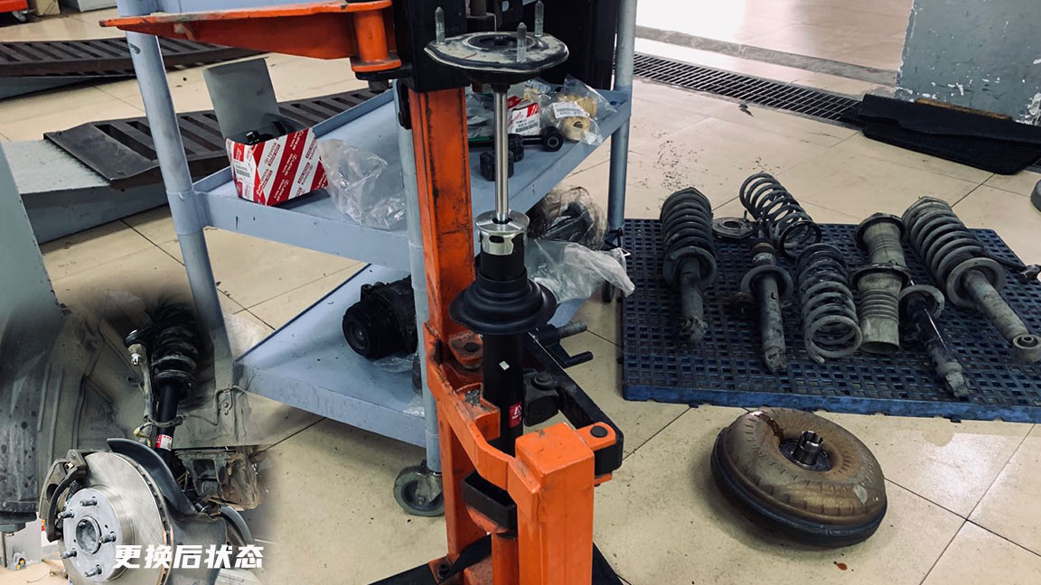 能看见的焕新以上基本都提到了,而这台皇冠155上一次大保养中最主要是解决底盘异响问题,当时找到的原因正是底盘配件、避震等老化所致,当然现在已经全部进行了更换。