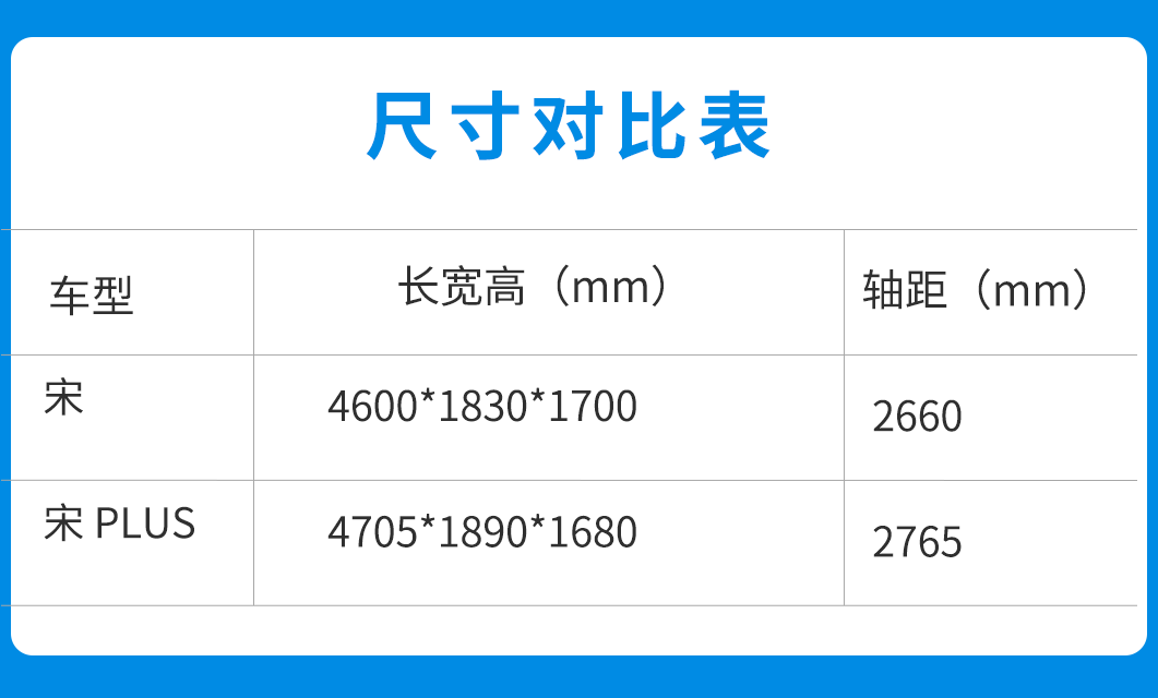 首先就是在空间尺寸方面,虽说比亚迪宋和比亚迪宋PLUS均定位紧凑级别SUV,但从整体的数据表现来看,比亚迪宋PLUS的轴距表现相比于比亚迪宋增加了105mm,整体的车身尺寸也大了一圈。不论是在整体的驾乘空间还是储物表现上显然是宋PLUS的表现更符合追求大空间的消费者。