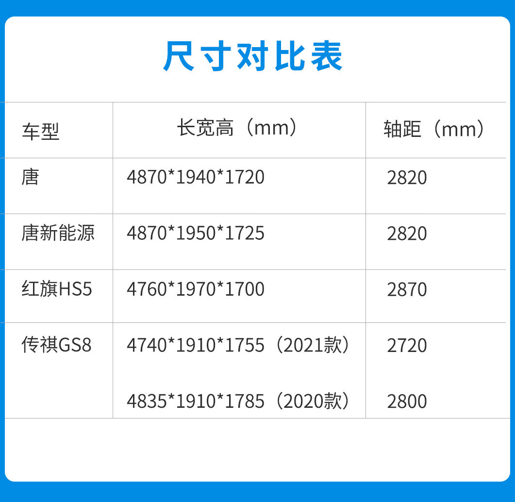 从三款车型的尺寸数据来看,三款车型均能够满足消费者对其中型SUV的空间需求。从账面数据来看,红旗HS5作为大五座车型表现最占优。而比亚迪唐表现同样不差,唐新能源版本车型相较于燃油版本车型在车身高度和宽度有一定的加长,意味着整体的驾乘宽度和车内视野环境要更好。而2021款传祺GS8相比2020款来说要小一圈,如果是选择七座版本车型,建议多考虑2020款车型。