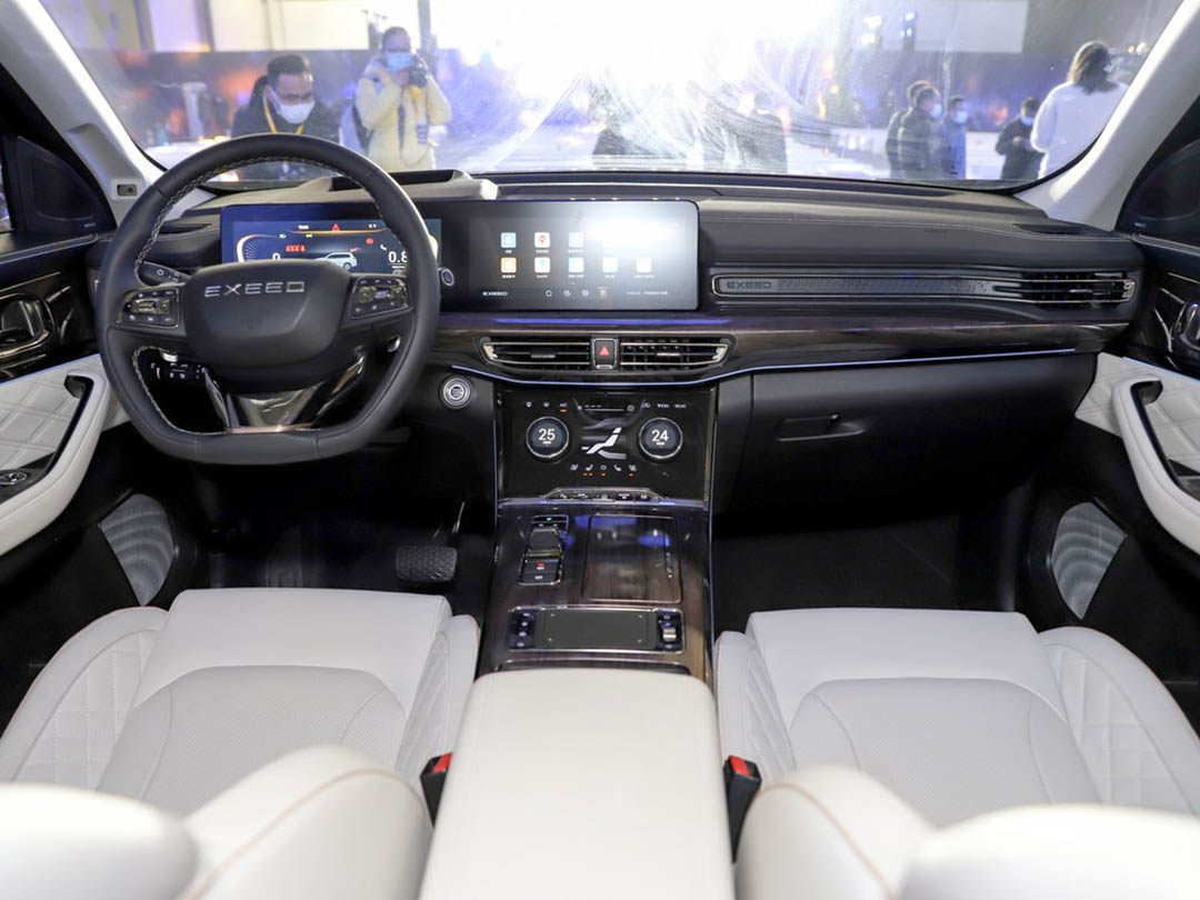 新车的外观采用“智·感美学”的星途家族式设计语言,以大面积的磨砂银色饰条连接两侧的大灯,细节处加入“EXEED”字样进行点缀。搭配三条横向的悬浮式镀铬饰条的前进气格栅,提升车身前脸的视觉宽度。