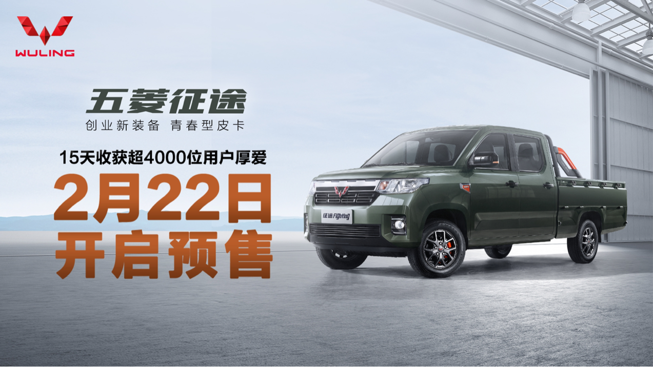 【2021年2月19日】新年伊始,再踏征途。今天,五菱征途再带来喜讯——新车将于2月22日正式开启预售。据悉,五菱征途通过盲定活动,半个月已收获超4000份订单,为皮卡市场注入新活力。此次预售已备受期待!