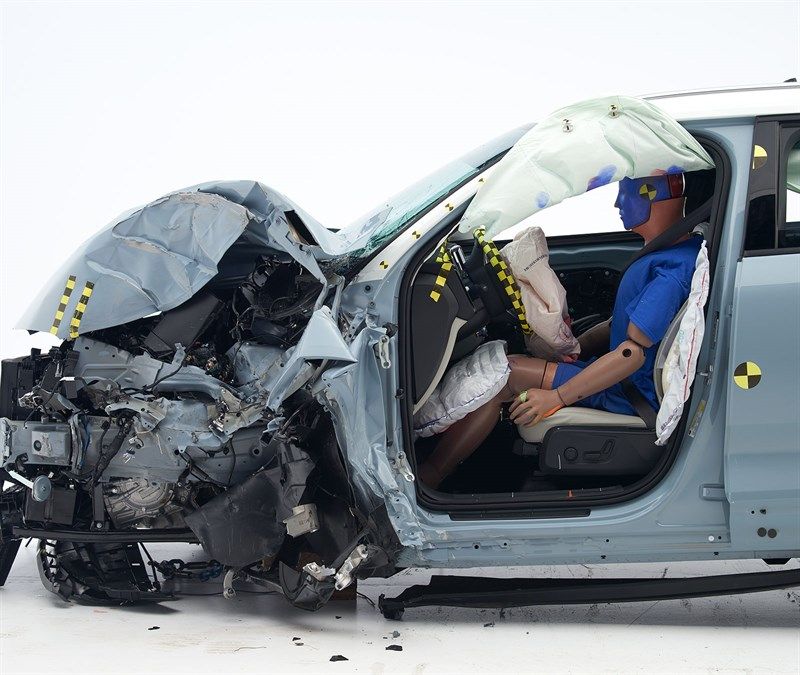 从碰撞结果来看,假人头部和腿部位置得益于安全气囊全方位的保护并没有造成较大的侵害;A柱没有发生太大的形变,使得主驾驶舱的结构保存良好,方向盘和仪表盘的位置也没有对假人的逃生空间造成侵占,并不会影响到乘员的逃生。