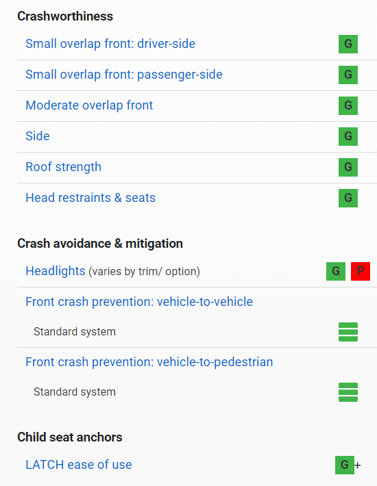 从碰撞成绩来看,毫无疑问五大基本测试一片绿灯全优通过。但有一个小细节,2020款汉兰达的测试成绩,事实上早已登上TSP的榜单,五项基本测试以及预防碰撞系统都拿到了全优的成绩,唯独是因为部分配置车型的前大灯得到了P的成绩,因而拿不到TSP+的成绩。不过经由调整过后2021款汉兰达,才能顺利地拿到TSP+的成绩,由此可见IIHS的严谨性。