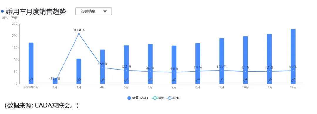 2020年上半年是疫情高峰,面对全国各地的交通封锁和停工停业,汽车产销受到巨大影响,2月份终端销量达到了冰点,但随着我国疫情得到全面控制,后半年汽车销量快速回暖,连续5个月保持了高速增长。从这方面可以看到,面对疫情影响,消费者短期内的购车需求其实是被迫暂缓。