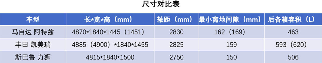 而斯巴鲁力狮虽然车身长度及车身轴距较短,但因为该车的高度是三款车型中最高,且最小离地间隙也是三款车型中最低的。这能在一定程度上保证车辆内部的头部空间,让后排乘坐者也能相当舒服。至于马自达阿特兹,后排空间经常被车主吐槽,在这买买君就展开详聊了。