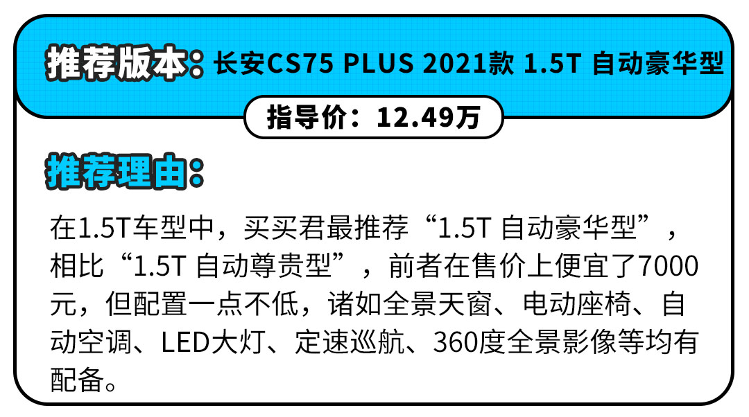 除此之外,CS75 PLUS还搭载了同级少有的爱信AT变速箱,其中1.5T车型匹配6AT变速箱,2.0T车型匹配8AT变速箱。如果担心双离合低速卡顿,可靠性跟不上的,那么爱信AT变速箱应该能入您的法眼。