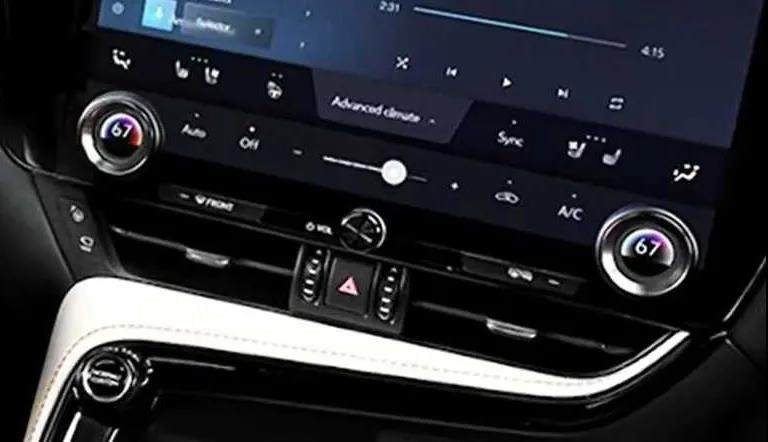 还有两处细节也需要提出,一是该车的空调控制面板升级为触摸式调节,不过好在保留了两个温度调节旋钮,同时旋钮内还带有温度显示功能,这样的调节方式比现款更加时尚。