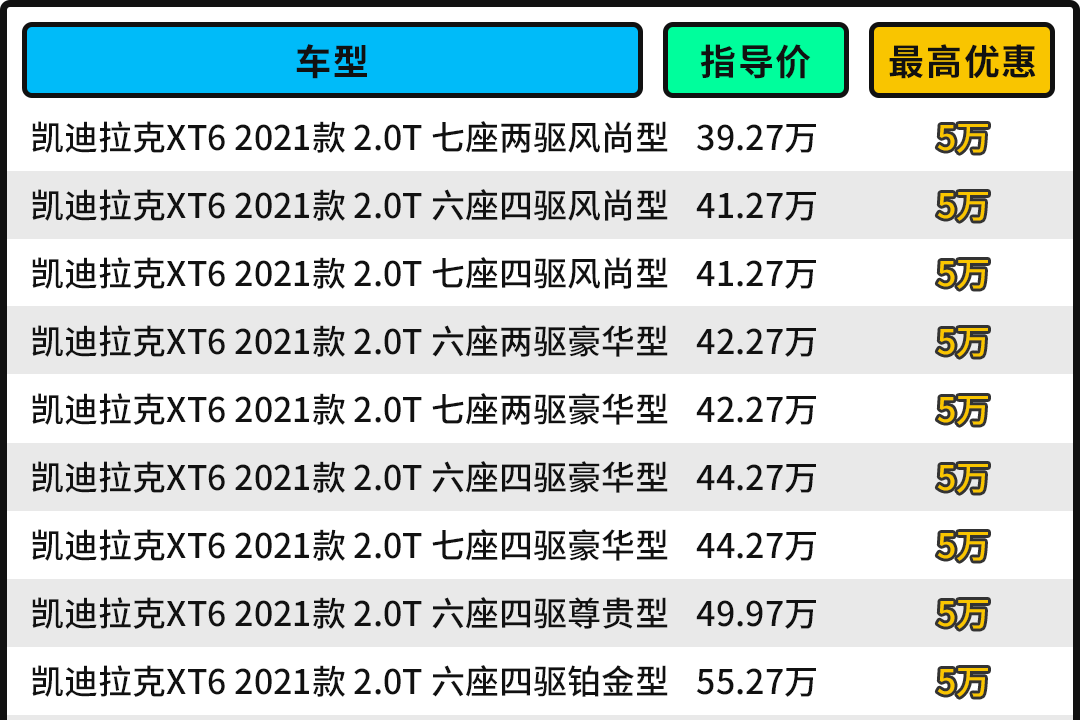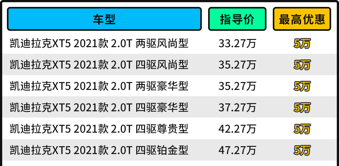 目前老款凯迪拉克XT5和XT6有着5万元的优惠力度,而新款车型相信也会保持一致,虽然是增加了48V轻混系统,但指导价也是上涨了3000元,为了保持市场竞争力,优惠不变就是最好的方式。此外,网上的报出的优惠往往还不如4S店多,所以实际上凯迪拉克XT5还会有更多的优惠。相信不少消费者拿着网上报价去到凯迪拉克4S店都会倍感惊喜。