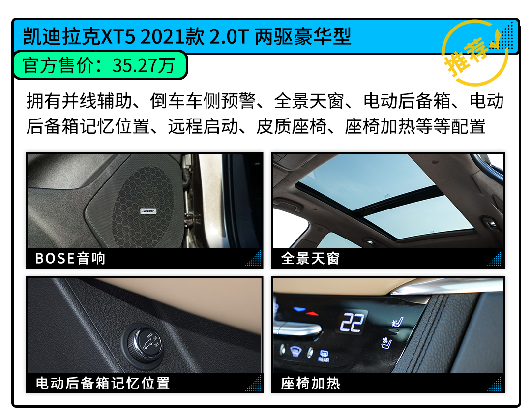 而对于凯迪拉克XT5也毫不例外,优先选择豪华版,而至于是选择两驱和四驱就看个人需求了,四驱相比两驱贵了两万,带来的优势就是更好的驾控体验,以及更好的通过性,弊端就是油耗更高、保养更高一些。