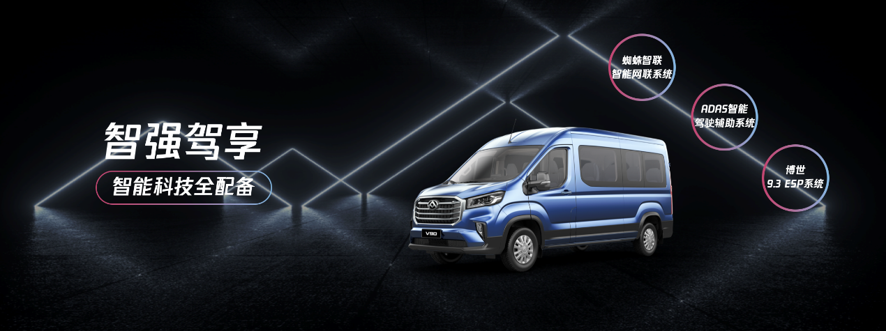 不断提升的驾乘品质,与新车的丰富配置密不可分。V90 智运王特别调校了底盘,并首创宽体轻客电子助力转向,带来如丝般顺滑的驾驶体验;而蜘蛛智联智能网联系统、ADAS智能驾驶辅助、博世ESP 9.3系统的搭载,让V90智运王智能、安全统统在线,轻松实现用户“智在必行,运赚自如”的小目标。