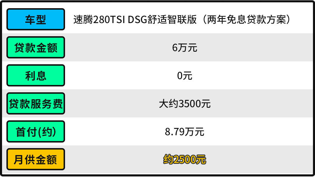 至于网友经常提问的月薪5K能不能买速腾,很简单,我们来算一笔账,假如你是以贷款方式购买,结合目前大众厂家提供的2年6万免利息贷款方案,即便是购买最低配的1.4T车型,首付要8.79万元左右,月供则需要2500元左右。