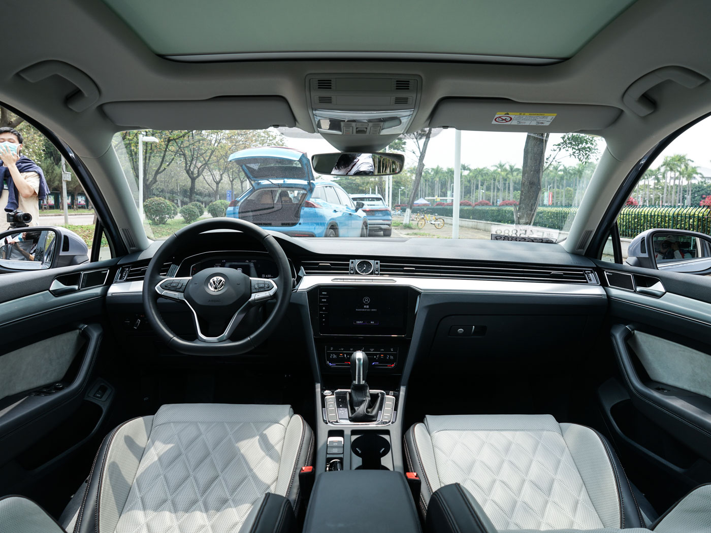 迈腾的内饰布局依然延续外观规整的设计理念,标志性的钟表、排列有序的物理按键的设计十分规整。不过贯穿式的出风口设计与液晶仪表的加持显得内饰前卫许多。用料方面,迈腾全系标配真皮座椅,且部分高配车型采用真皮/翻毛皮双材质的标配,要知道在中型轿车之中能够做到全系标配真皮座椅的可不多见。