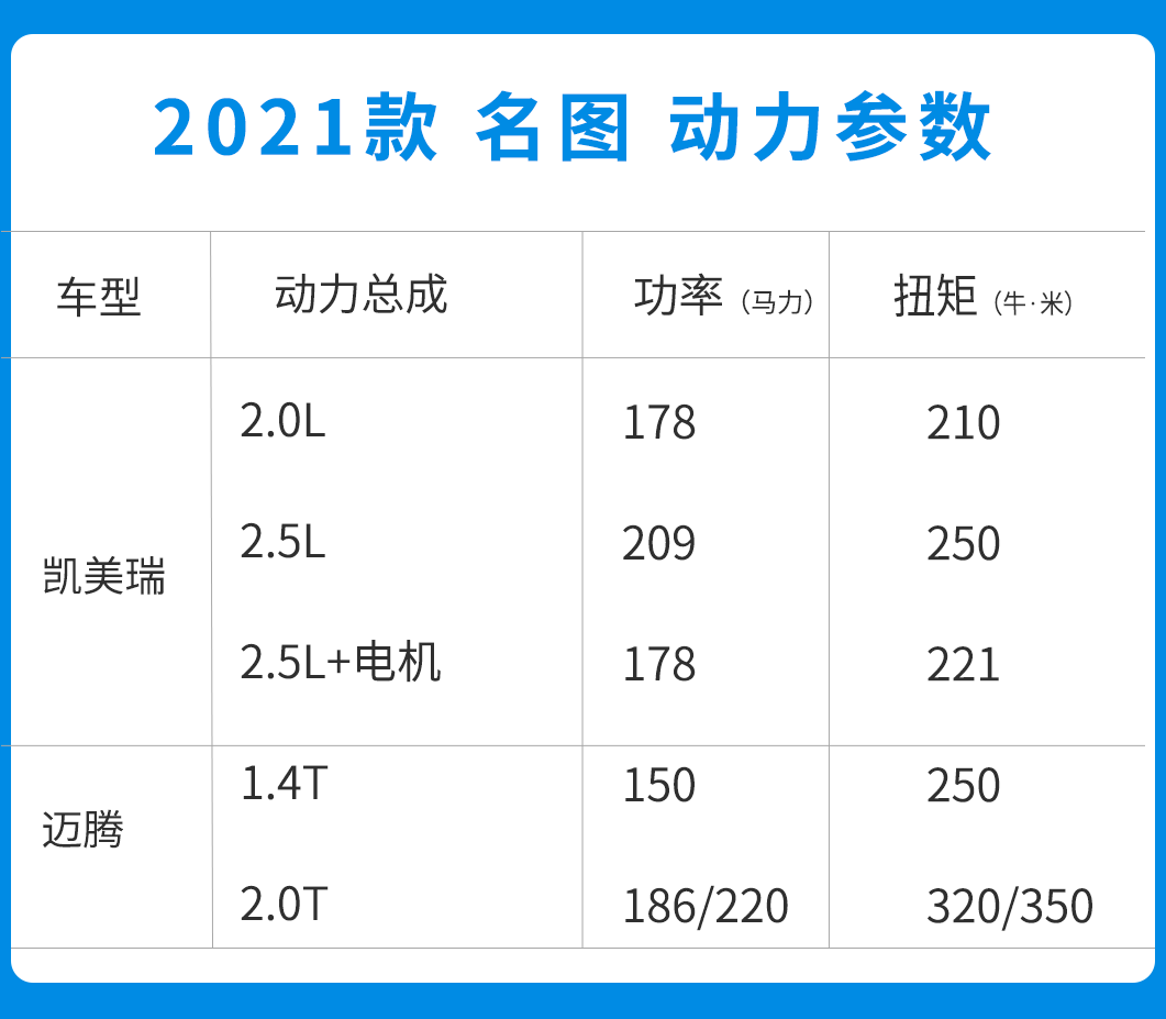 凯美瑞目前有三套动力总成,燃油与混动双齐发的动力布局也是丰田旗下车型的常规操作。而迈腾还是消费者最为熟悉的代号为EA211的1.4T发动机和EA888的2.0T发动机。从两款车型的账面数据来看,迈腾1.4T动力总成峰值扭矩能够媲美丰田的2.5L发动机,动力输出足够充沛,但凯美瑞的马力数据相对于迈腾而言更加出色。