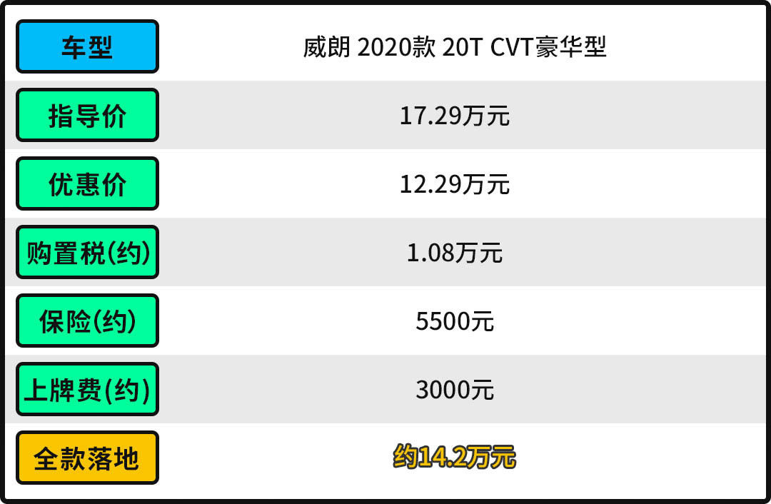 可能有人说:三缸我就不买了,但我还是建议你先看看它的价格,要知道目前威朗的优惠都是5万元起步,即便是作为中配的豪华版,落地价也不过是14.2万元,这可是包含了多项驾驶辅助、电动加热座椅的A+级轿车。