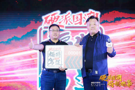 在发布会福将驾道环节,皮卡汽车达人皮卡大叔和大家分享了福田大将军的驾乘体验,并与福田皮卡一起见证福将驾道车主俱乐部品牌IP的诞生;同时他也获得了俱乐部第00001号会员纪念牌。福将驾道是福田对车主最真挚的欢迎,未来将会有更多的福将加入到福田车主俱乐部。