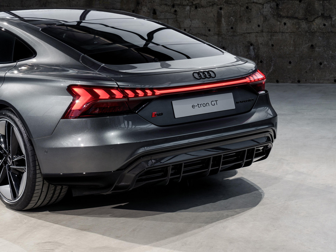 同样的造型运用在奥迪RS e-tron GT上却不同,新车外观上有很多奥迪R8的元素,但在很多细节上又处处显不同,为了达到超低的风阻系数,封闭式格栅是“正常表现”,再配合上主动式进气格栅以及车尾大尺寸的下扩散器,将气流尽快从车底排出。