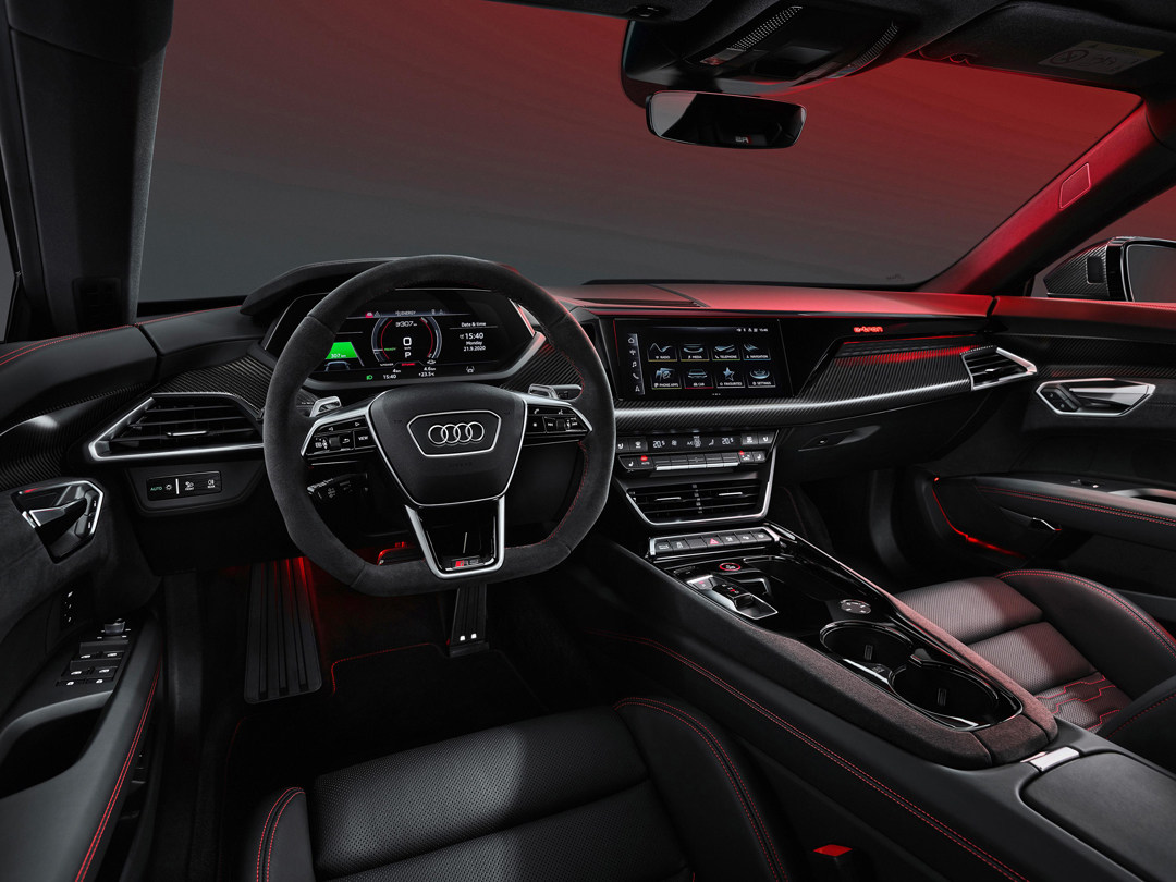 相比起Taycan的极简内饰,奥迪RS e-tron GT明显更加传统些,当然这个传统是基于奥迪家族风格改进而来。