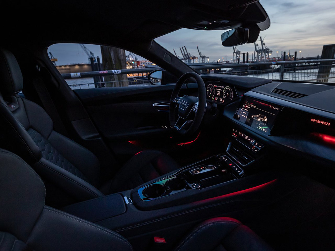 仪表盘和中央显示屏幕分别为12.3英寸和10.1英寸,没错仪表盘比中央显示屏尺寸大。前文说过,奥迪RS e-tron GT比较“传统”,表现在该车依旧设计出传统仪表盘区域而并非Taycan上仅仅一块屏幕。UI基本沿用现款奥迪上使用多年的风格,同时因应车辆的定位而轻微修改UI。
