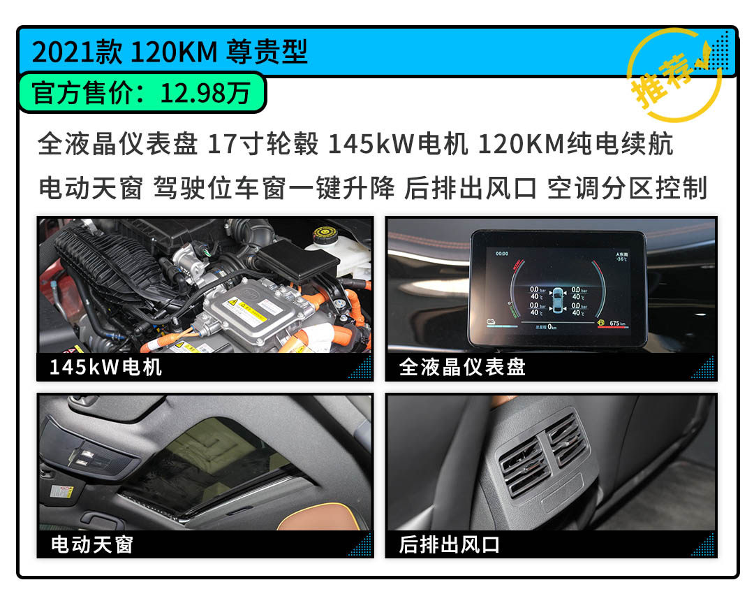 通过配置表格对比不难看出,定价12.98万元的120 KM尊贵型才是最值得购买的版本,原因很简单: