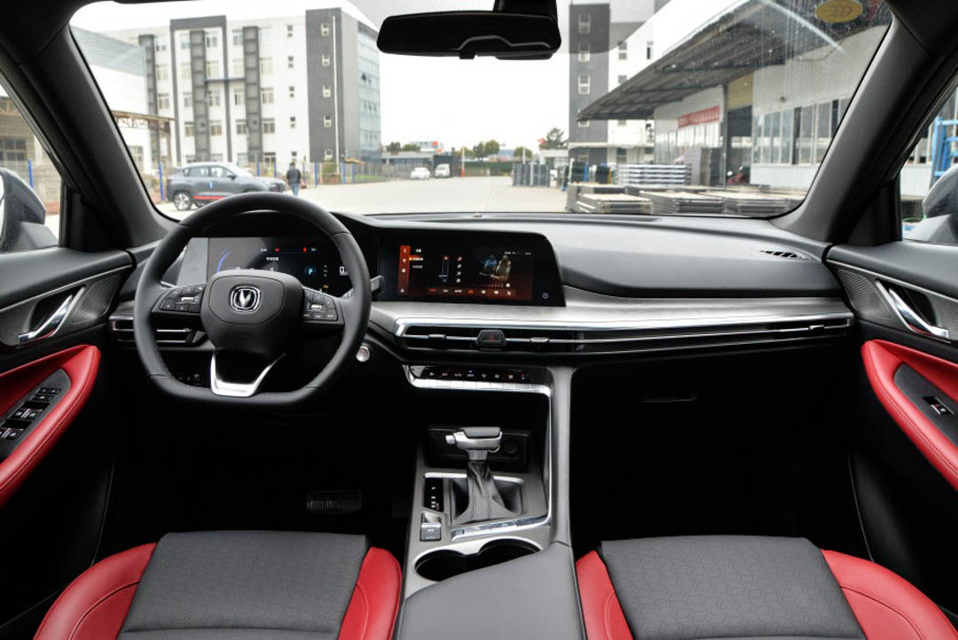最直观的就是外观造型,如果说老款的CS35 PLUS还存在着一丝外国品牌设计的影子,那么新款可以说是脱胎换骨了。特别是在全新的黑红配色套件加持之下,原本定位家用车的CS35 PLUS竟然有了一丝运动感。